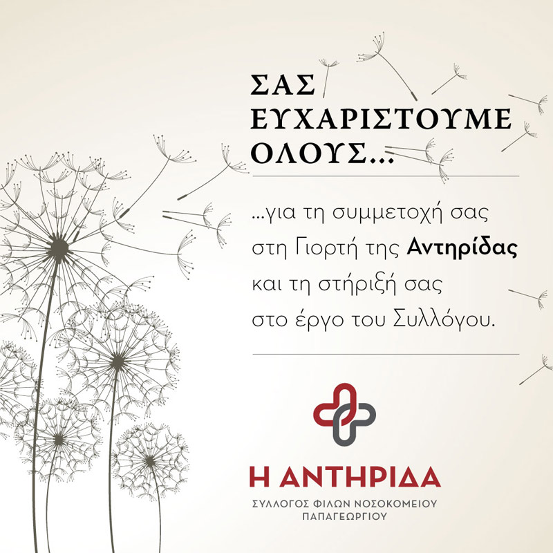 Θα θέλαμε να ευχαριστήσουμε θερμά τους φίλους του Συλλόγου Φίλων Νοσοκομείου Παπαγεωργίου «Η Αντηρίδα», που με την γενναιόδωρη υποστήριξή τους…