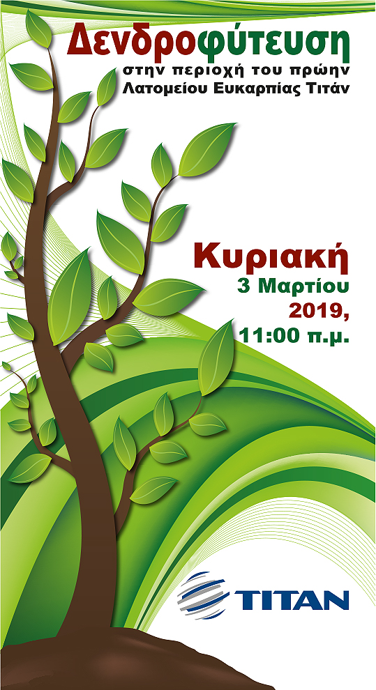 Κυρίες και κύριοι, Σας προσκαλούμε να συμμετάσχετε στην Δενδροφύτευση που διοργανώνει η εταιρεία ΤΙΤΑΝ, την Κυριακή 03.03.2019 και ώρα 11:00…