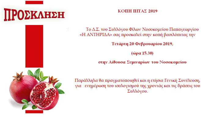 Πρόσκληση στην κοπή πίτας της Αντηρίδας