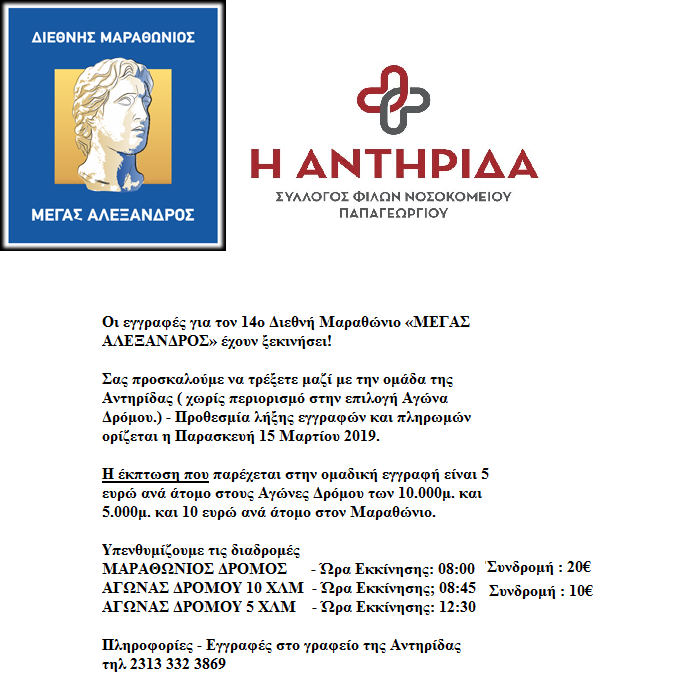 Η ΑΝΤΗΡΙΔΑ συμμετέχει στον αγώνα δρόμου Πανοράματος, τόσο στα 5 χλμ όσο και στα 10 χλμ, την Κυριακή 31 Μαρτίου…