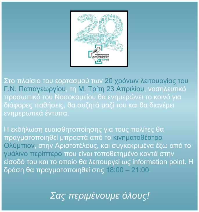 Ημερολόγιο Εκδηλώσεων για τα 20 χρόνια του Γ.Ν. Παπαγεωργίου