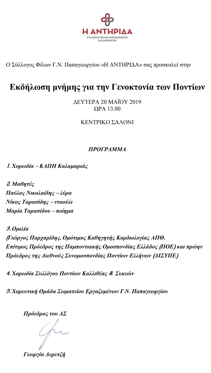 Εκδήλωση μνήμης για τη Γενοκτονία των Ποντίων